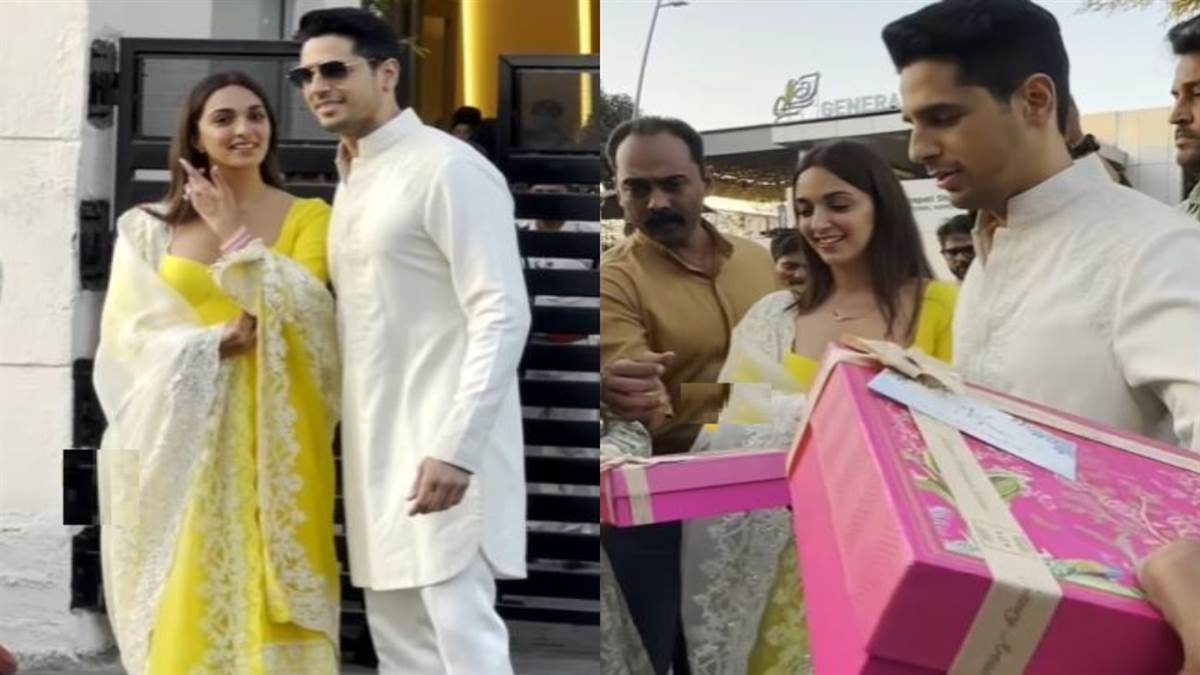 कियारा आडवाणी और सिद्धार्थ मल्होत्रा ने फैमिली के लिए एक छोटा सा रिसेप्शन प्लान किया था। रिसेप्शन के बाद अब कपल मुंबई पहुंच गया है। दोनों इस दौरान काफी खूबसूरत लग रहे थे। कियारा ने यलो और व्हाइट कलर का सूट पहना था वहीं सिद्धार्थ इस दौरान ऑल व्हाइट लुक में स्पॉट हुए। कपल ने पैपराजी को भी खुलकर पोज दिए। कियारा इस दौरान मंगलसूत्र और वेडिंग रिंग पहने नजर आईं। इस दौरान कियारा ने मांग में सिंदूर भी भरा हुआ था जो उन्हें बिल्कुल नई-नवेली दुल्हन का लुक दे रहा था। इस दौरान दोनों की जोड़ी काफी खूबसूरत लगी। कपल ने पैपराजी को मिठाइयां बांटी और स्वीट मैसेज भी दिए। पैपराजी अकाउंट वीरल भियानी ने इसके वीडियो सोशल मीडिया पर पोस्ट किए हैं।