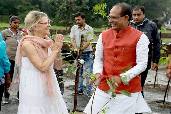मुख्यमंत्री श्री चौहान के साथ यूनिसेफ इंडिया प्रतिनिधि सुश्री सिंथिया मैक्फ्री ने किया पौध-रोपण