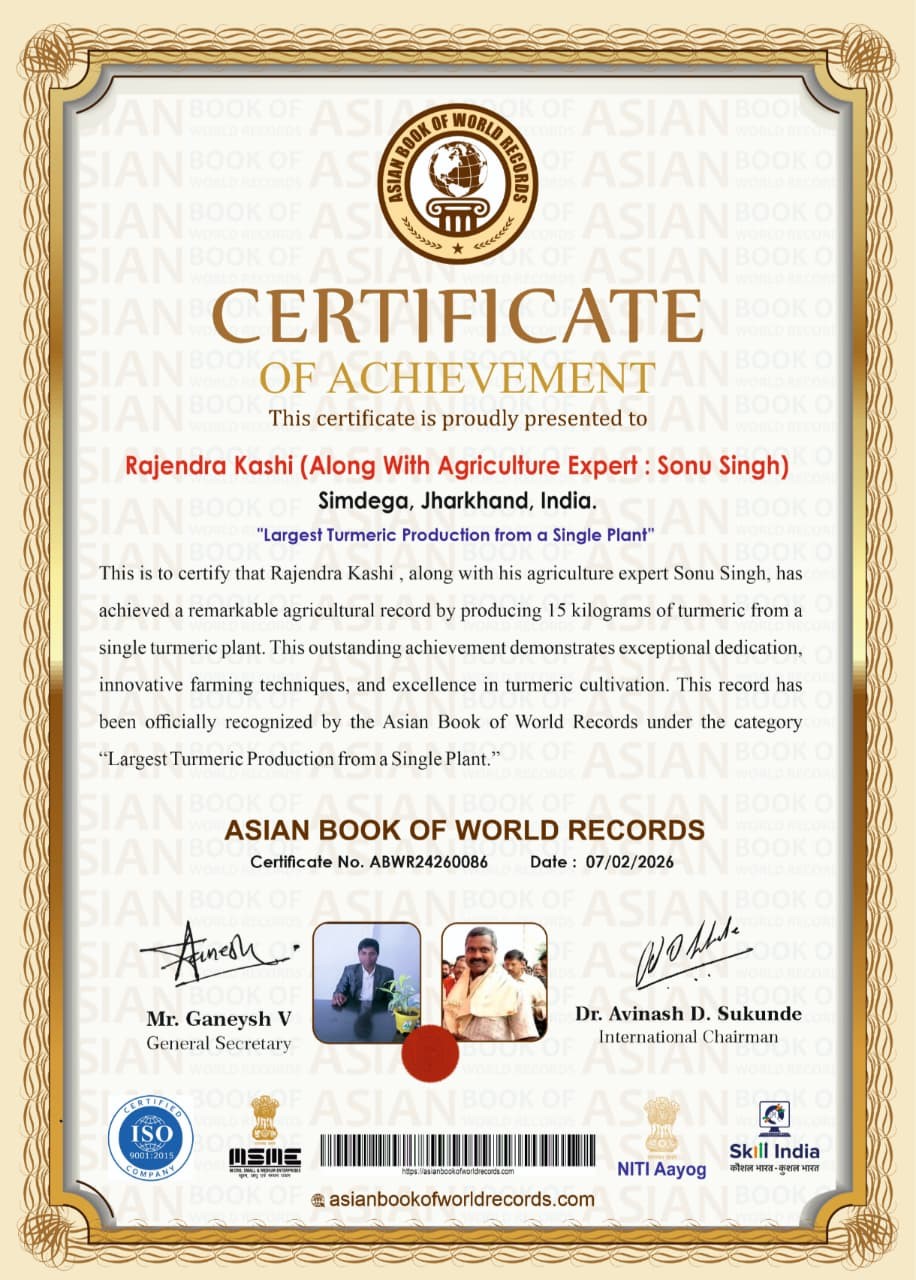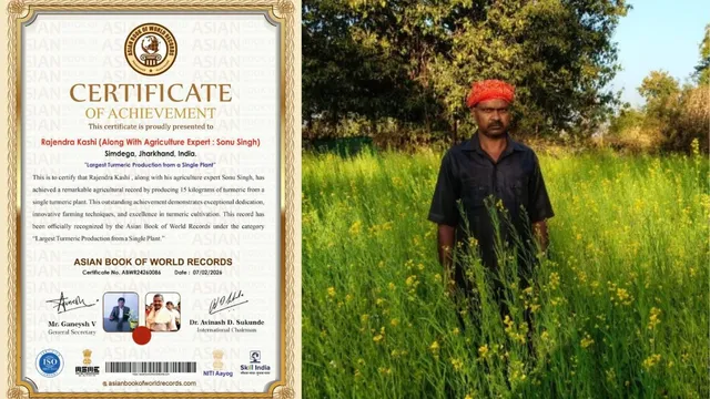 जैविक खेती का कमाल: झारखंड के किसान ने बनाया वर्ल्ड रिकॉर्ड, एक पौधे से 15 किलो हल्दी का किया उत्पादन