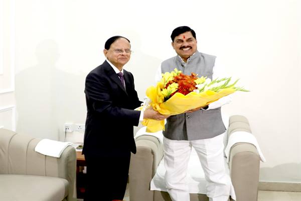 मुख्यमंत्री डॉ. मोहन यादव से प्रधानमंत्री के प्रधान सचिव डॉ. प्रमोद कुमार मिश्रा ने शनिवार देर शाम समत्व भवन (मुख्यमंत्री निवास) में सौजन्य भेंट कर विभिन्न विषयों पर चर्चा की।