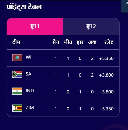 दरअसल, भारत को जिम्बाब्वे और वेस्टइंडीज दोनों को हराना होगा ताकि उसके चार अंक हो जाएं। हालांकि, लगातार दो मैच जीतने के बावजूद भारत के सेमीफाइनल में पहुंचने की गारंटी नहीं हैं।