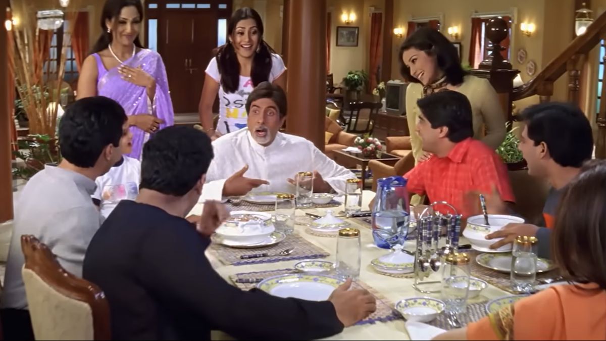 2003 में रिलीज हुई इस फैमिली फिल्म में अमिताभ बच्चन और हेमा मालिनी ने अहम किरदार निभाया है। दोनों के किरदारों आलोक राज मल्होत्रा और पूजा मल्होत्रा के चार बच्चे होते हैं- जिनका किरदार अमन वर्मा, समीर सोनी, साहिल चड्ढा और नासिर काजी। चारों अपनी परिवार के साथ माता-पिता से अलग रहते हैं।