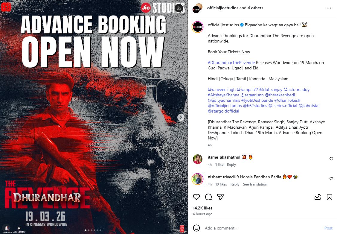 धुरंधर: द रिवेंज की एडवांस बुकिंग हुई शुरू/ फोटो- Instagram