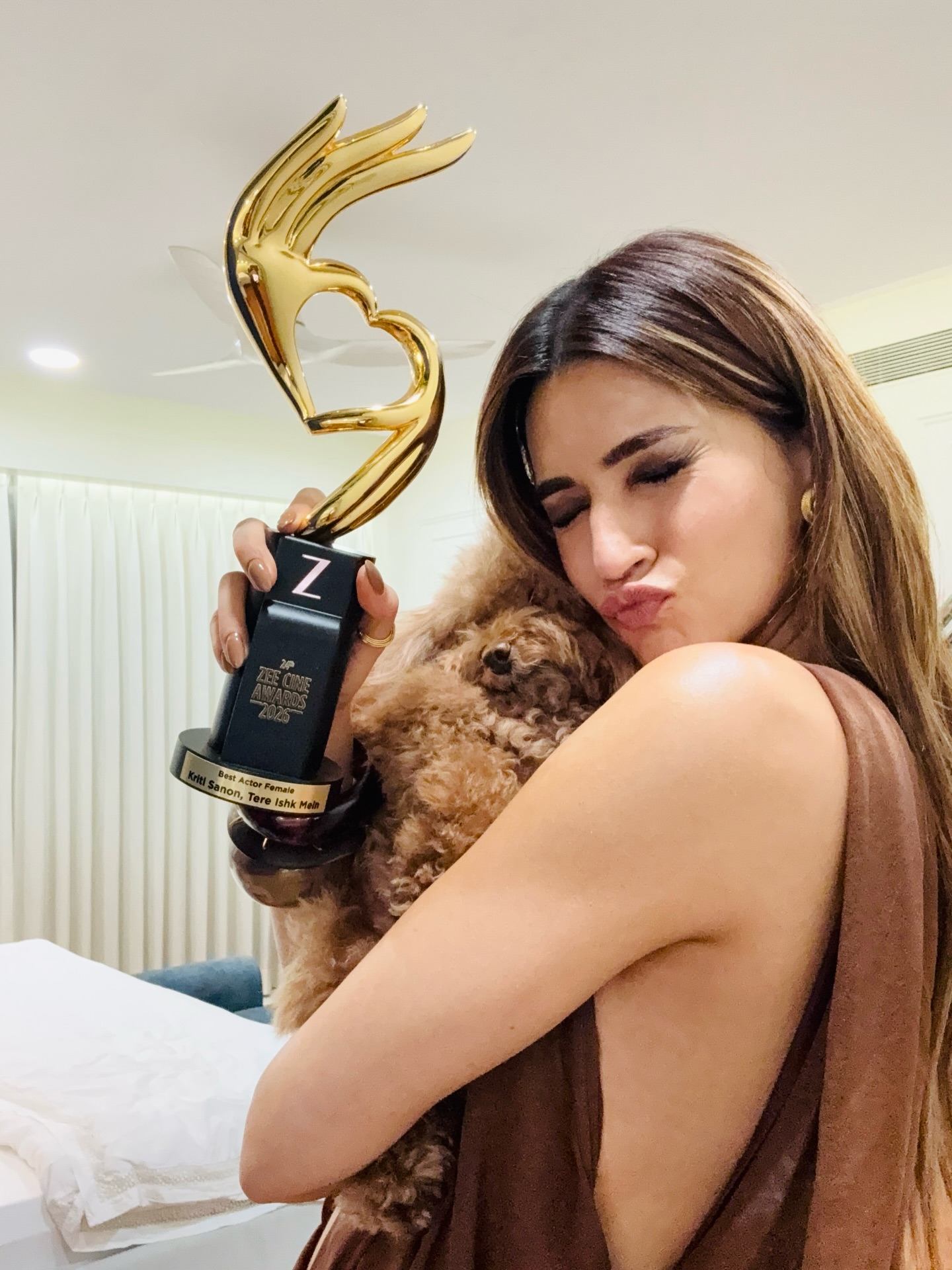 पिछले 12 सालों से कृति सेनन बॉलीवुड में एक्टिव हैं। टाइगर श्रॉफ संग फिल्म हीरोपंती से सिनेमा जगत में कदम रखने वालीं कृति को जी सिने अवॉर्ड 2026 के दौरान बेस्ट एक्ट्रेस चुना गया है। इंस्टाग्राम पर उन्होंने अवॉर्ड संग अपनी तस्वीरों को साझा करते हुए खुशी जाहिर की है।