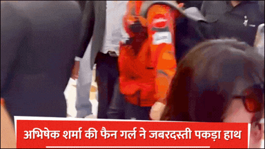 Abhishek Sharma का जबरदस्ती फैन गर्ल ने पकड़ा हाथ